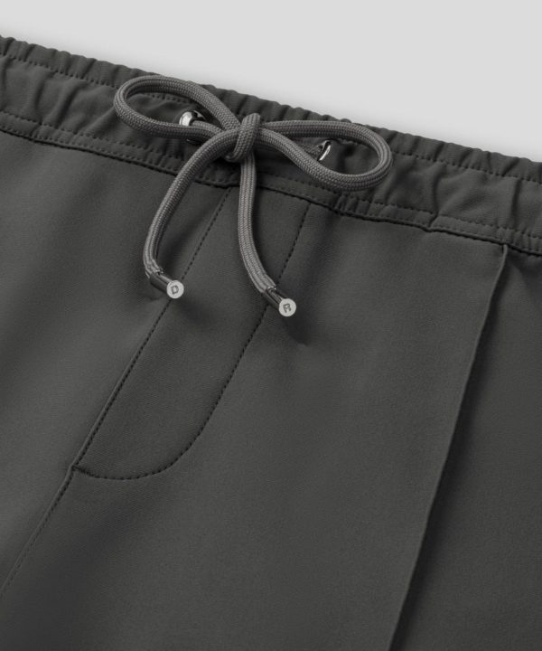 Chic city pants upgraded in an ultra-resistant, breathable, stretch fabric. Made in a high-tech mix of light nylon and spandex©. Designed with a straight, classic fit with front leg stitching, elastic waistband and adjustable drawstrings with RD engraved metal tips. Two back pockets. Featuring the two discrete black-lacquered RD eyelets on the side.