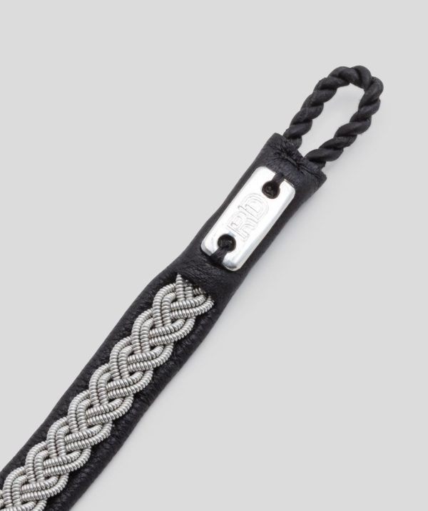 The RD Lapland Bracelet is made of a braid of tin wire sewn onto vegetable-tanned reindeer leather. Approx. 1 cm wide, it closes with a reindeer horn button and reinforced buckle. A traditional bracelet, 100% hand-made in Lapland, Sweden with the RON DORFF initials engraved on a tin plate. Comes in with a storage pouch.