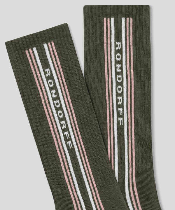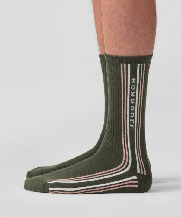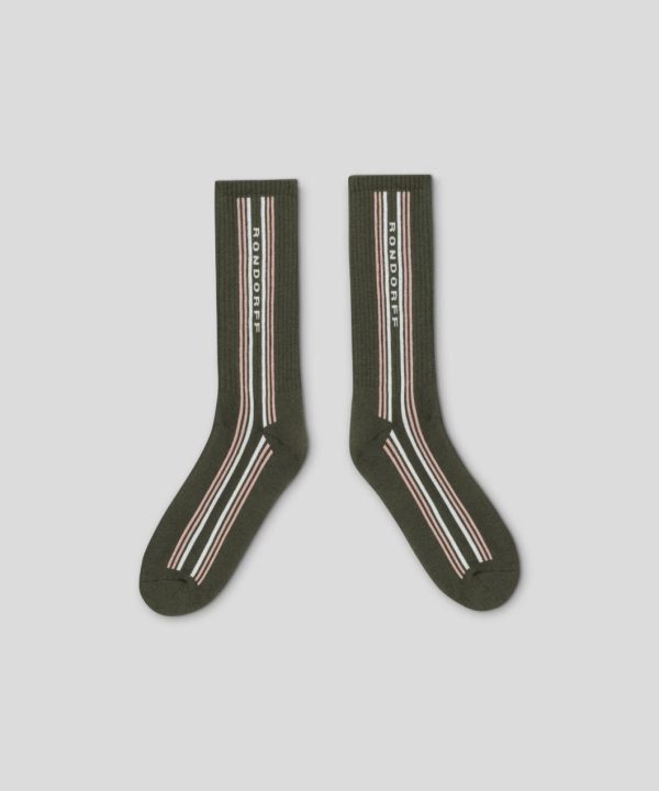 The cult calf-high sports socks with vintage stripes on the side with the RON DORFF print. Now made in France in the finest cotton with a hint of elastane for guaranteed fit wash after wash.
