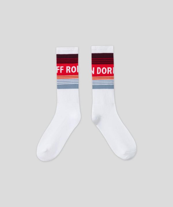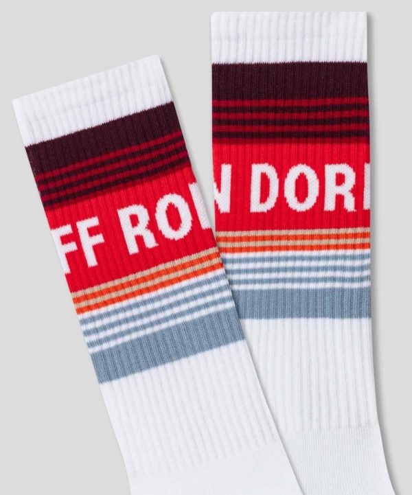 The cult calf-high sports socks with “RON DORFF”, and irregular stripes. Made in France in the finest cotton with a hint of elastane for guaranteed fit wash after wash.