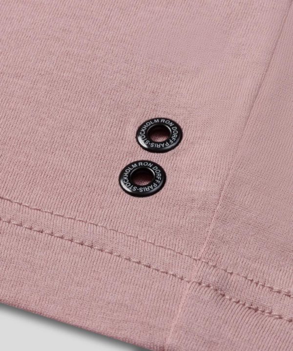 The classic no frills, no logo, RON DORFF t-shirt revisited in a 100% ultra-soft cotton. Designed with a slightly tapered fit. Crew neck with elegant binding collar for chic urban wear. Featuring the two discrete black-lacquered RD eyelets on the side.