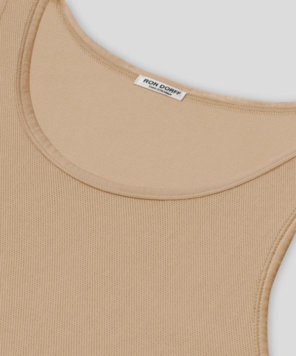The classic underwear tank top in vintage-style cotton mesh, updated with a slightly tailored fit for use at home or at the gym. No print, simply two discrete embroidered RD eyelets tone on tone on the side.