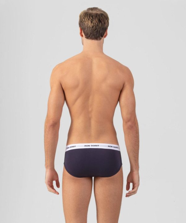 The new RON DORFF Y-front briefs with a visible, white, elastic waistband branded RON DORFF in black. Designed with a tapered fit and cut in the finest cotton jersey with a hint of elastane for a guaranteed fit wash after wash. The two discrete, RD eyelets embroidered tone-on-tone on the side.